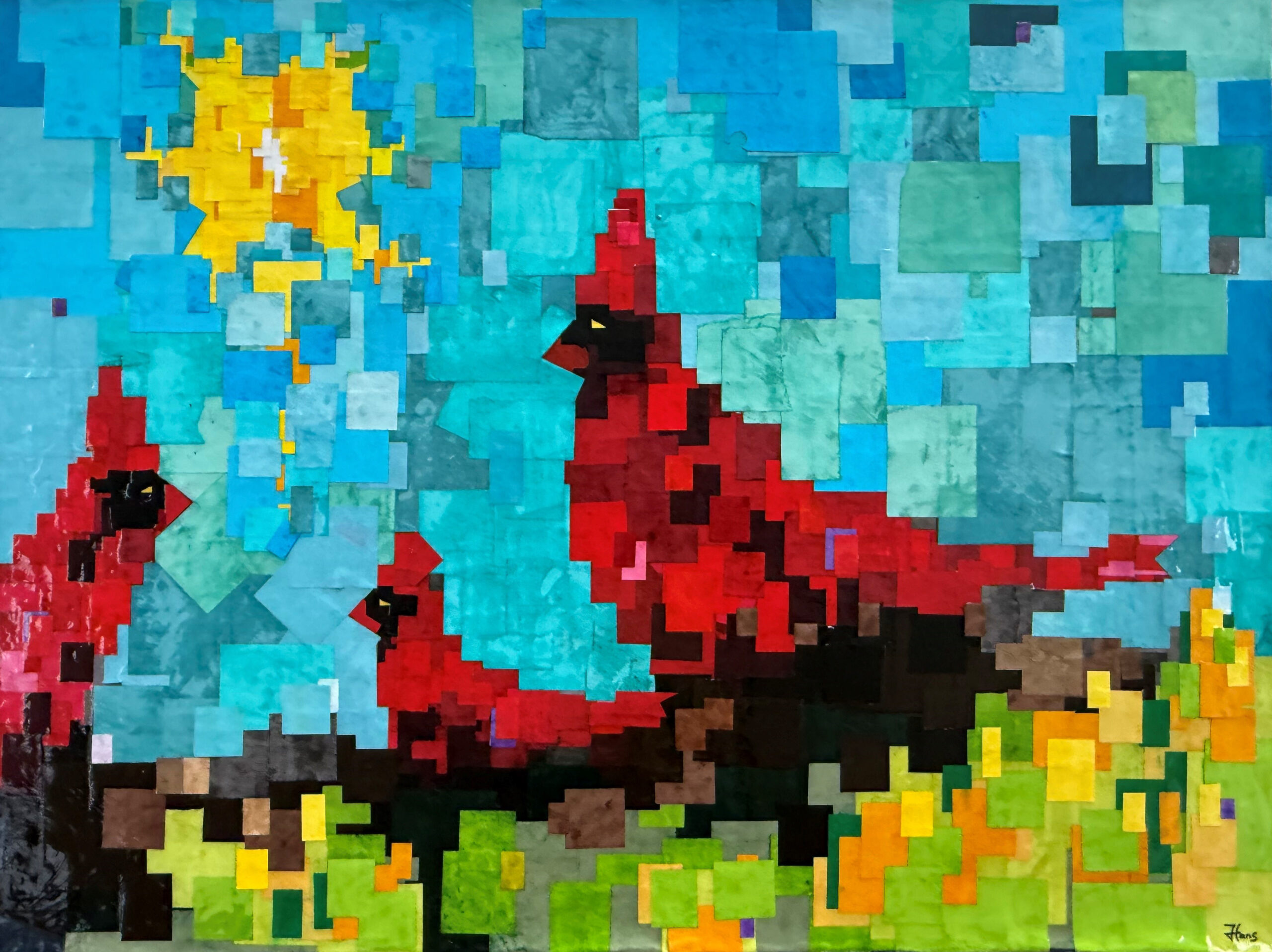 Three Red Birds (SIZE: 36” HEIGHT X 48” WIDTH)